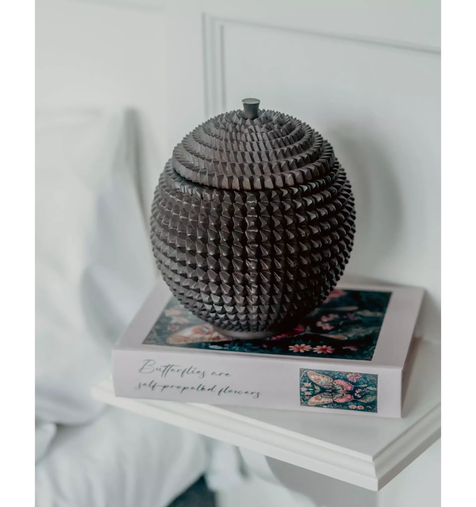 Ge ditt hem en varm och naturnära känsla med denna dekorativa förvaringsask i form av en tallkotte. Den unika designen kombinerar funktion och estetik på ett stilfullt sätt och blir ett blickfång oavsett om den placeras på soffbordet, i bokhyllan eller på sängbordet.