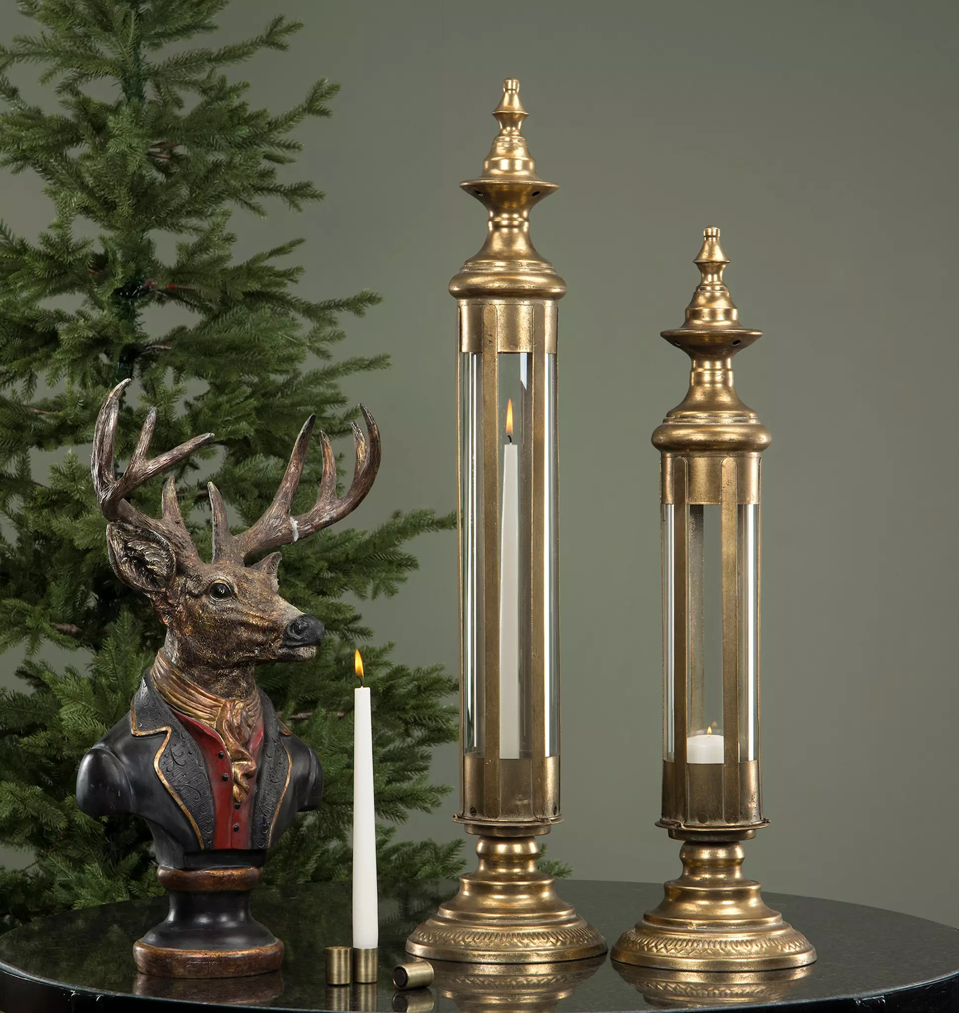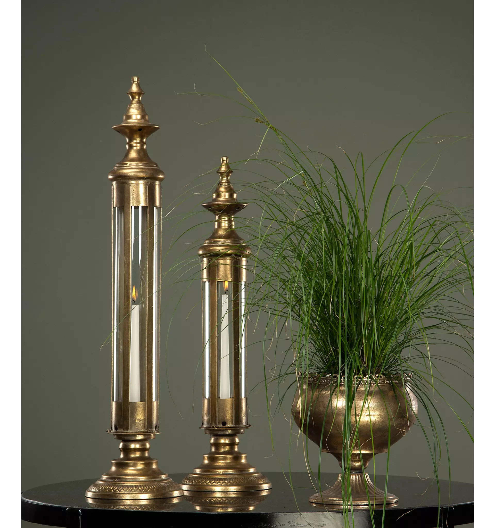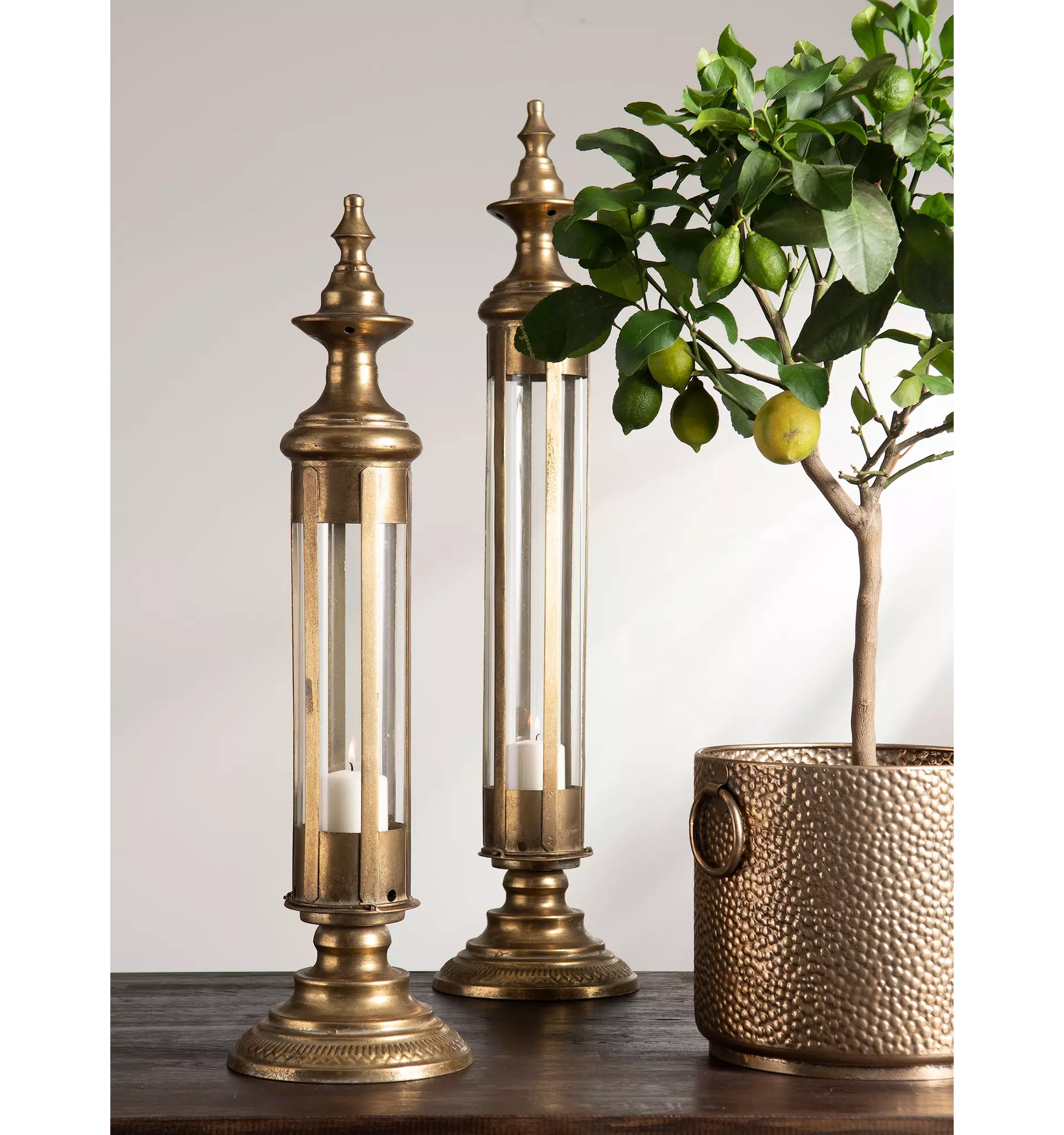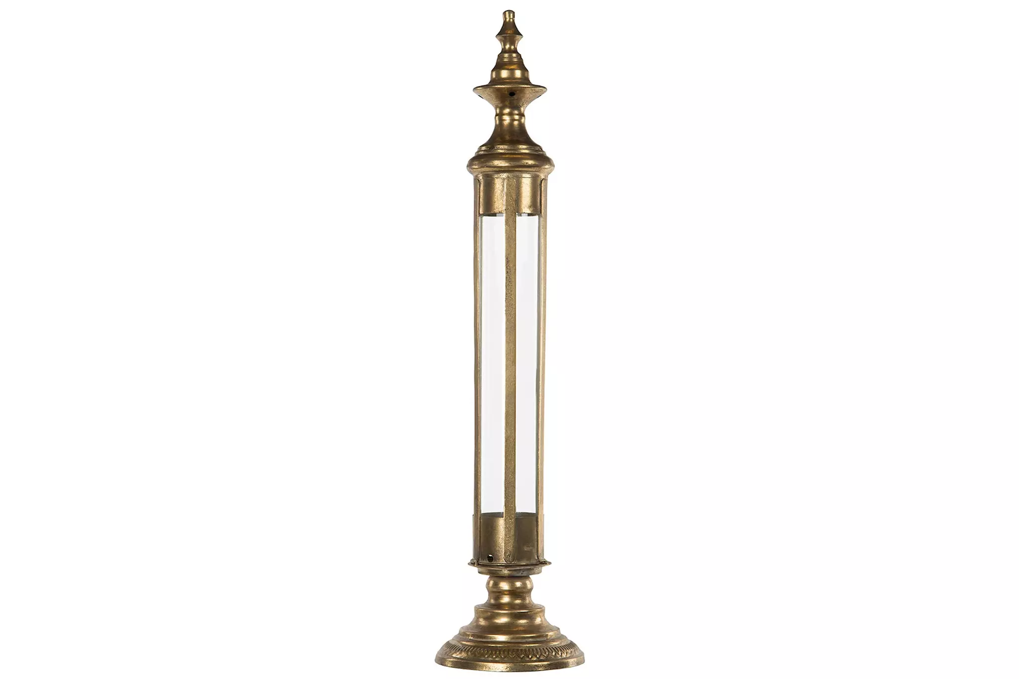 Den stabila foten med 19 cm i diameter ger en gedigen känsla och gör lyktan till ett tryggt och dekorativt val för inomhusbruk. En guldig ljuslykta som både förstärker rummets atmosfär och fungerar som en stilren statement-detalj.