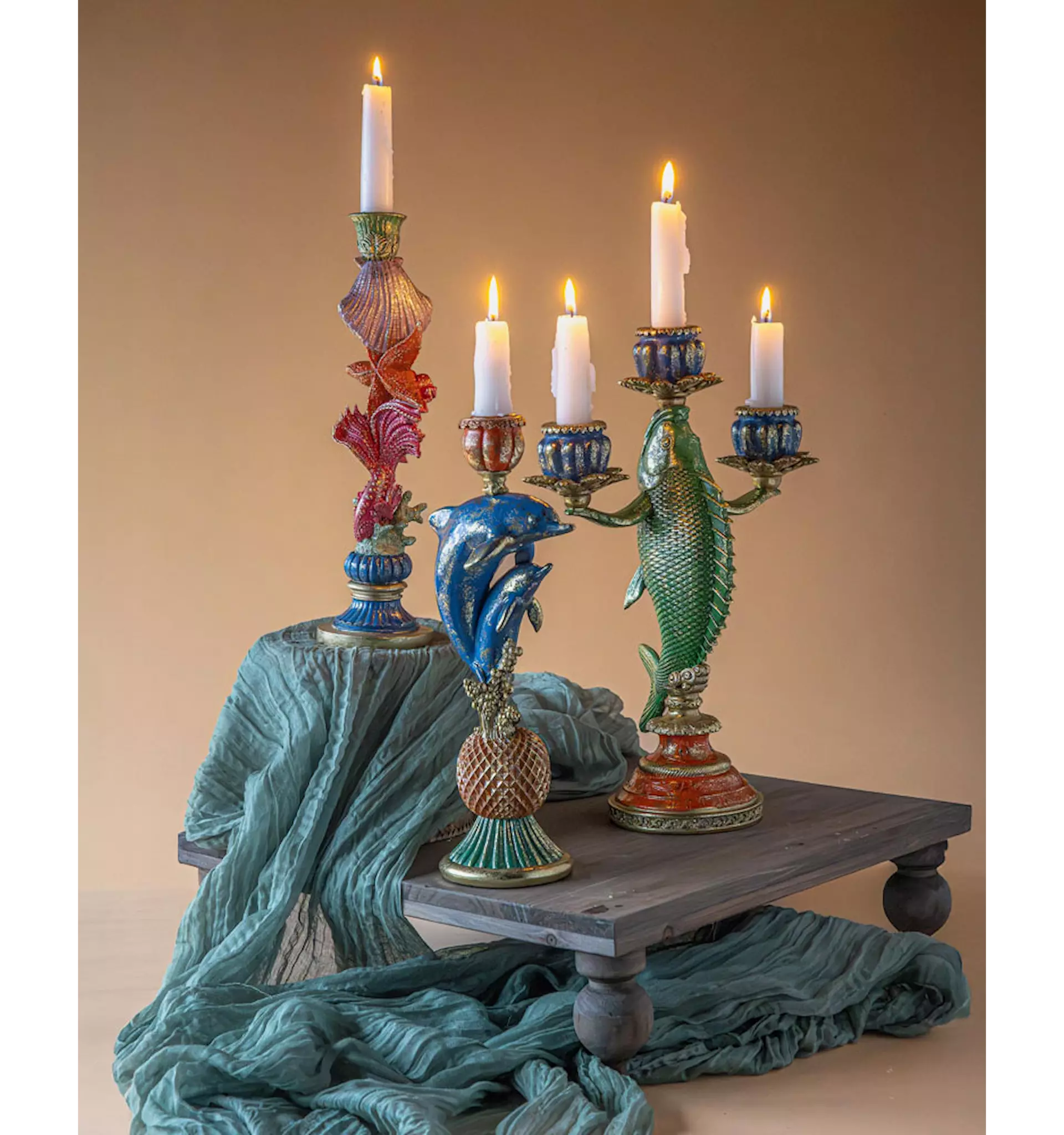 Skapa en lekfull och livfull känsla i hemmet med denna dekorativa ljusstake med delfiner. En charmig inredningsdetalj som kombinerar havsinspiration med färg och personlighet – perfekt för dig som vill inreda med levande ljus på ett unikt sätt.