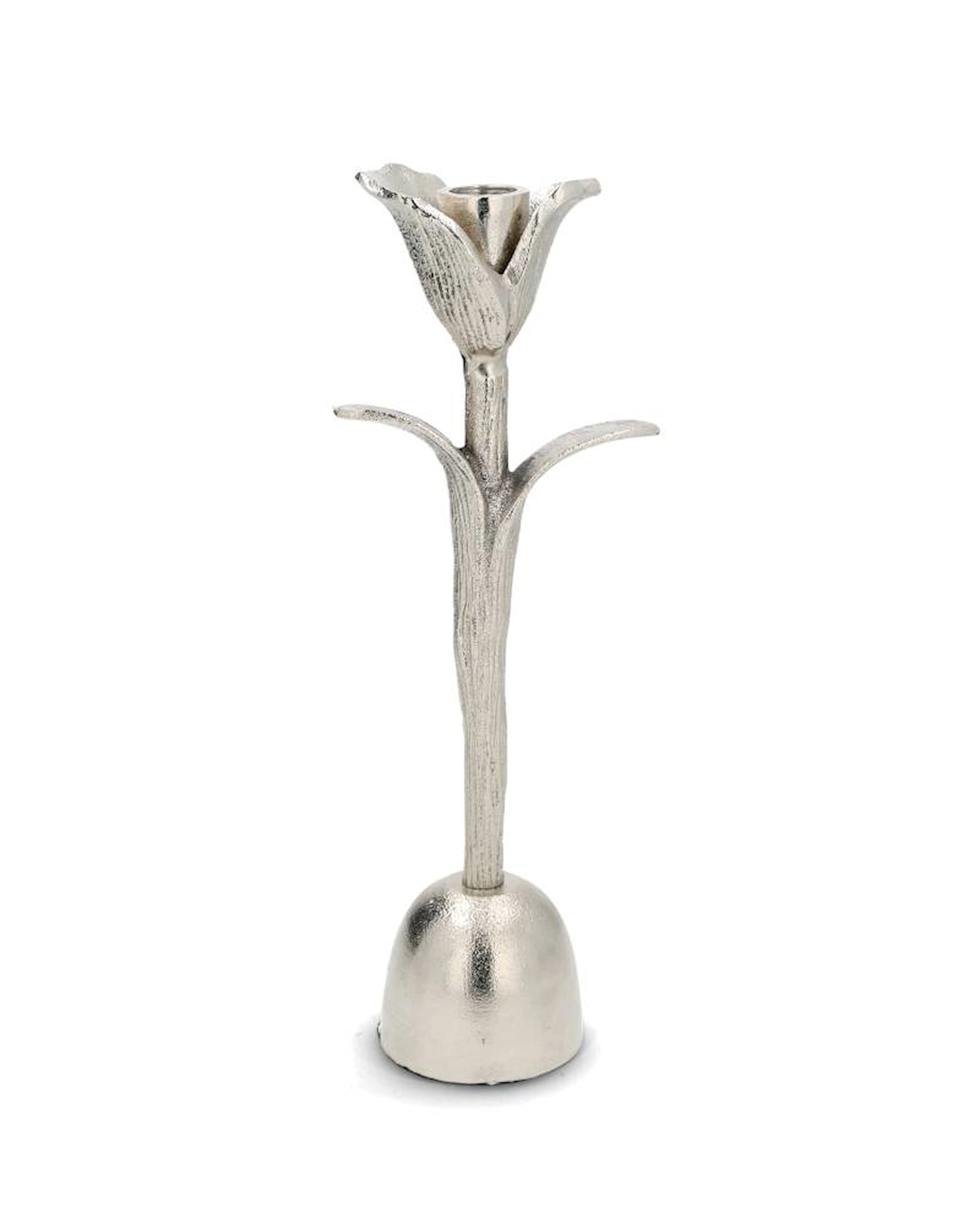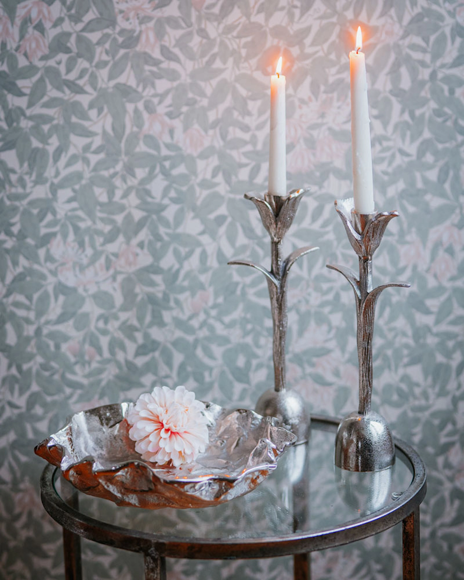 Ljusstake Ros Silver 32 cm – Elegant Blomformad Ljusstake i Metall