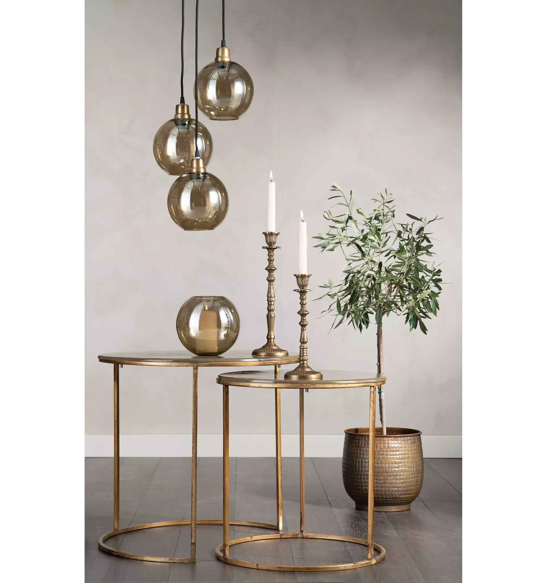 Detta är en elegant och tidlös inredningsdetalj som lyfter hela rummet med sin mjuka, runda form och varma ton. Den skimrande champagnefärgen ger ett exklusivt och harmoniskt uttryck som passar lika fint i modern som klassisk inredning.