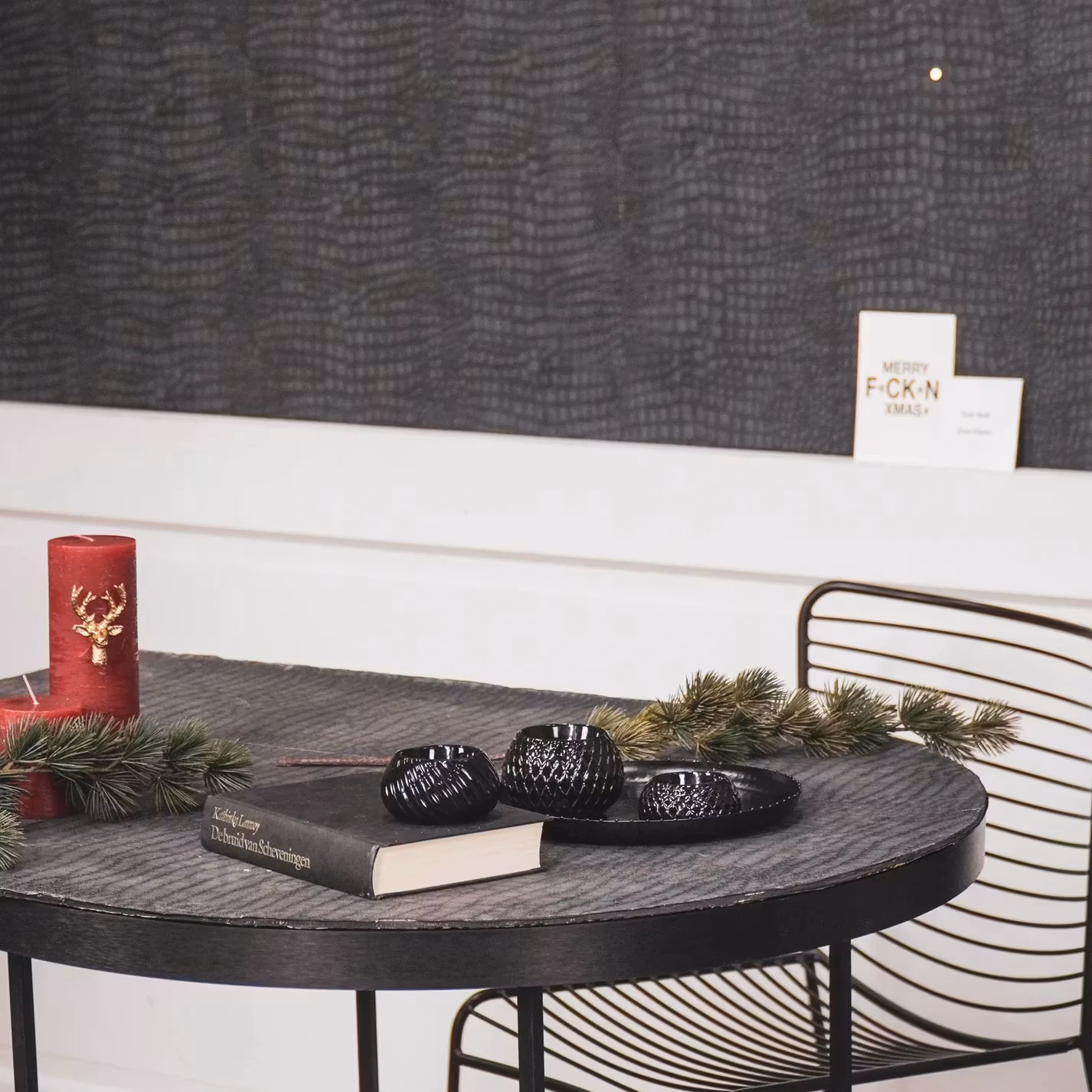 Ljuslyktans svarta, glänsande yta och med sitt härliga mönster ger den en touch av modern elegans. Det är de enkla och eleganta detaljerna som gör skillnaden. Låt skenet från värmeljuset reflekteras i den glansiga keramiken och skapa en subtil, förtrollande glöd i ditt hem.