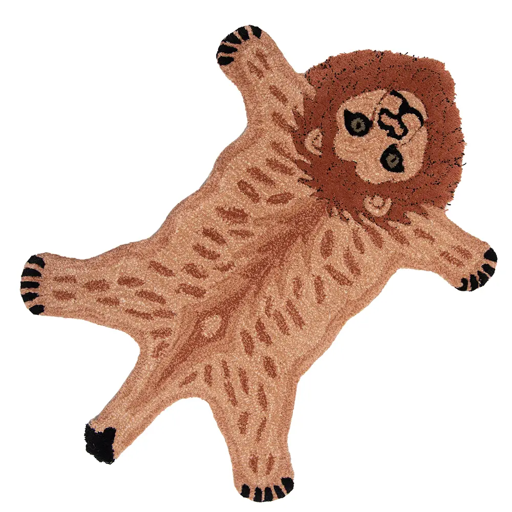 Den lagom stora storleken gör att lejonmattan enkelt kan placeras i olika rum – perfekt framför sängen, i barnrummet eller som en lekfull detalj i en stilren inredning.