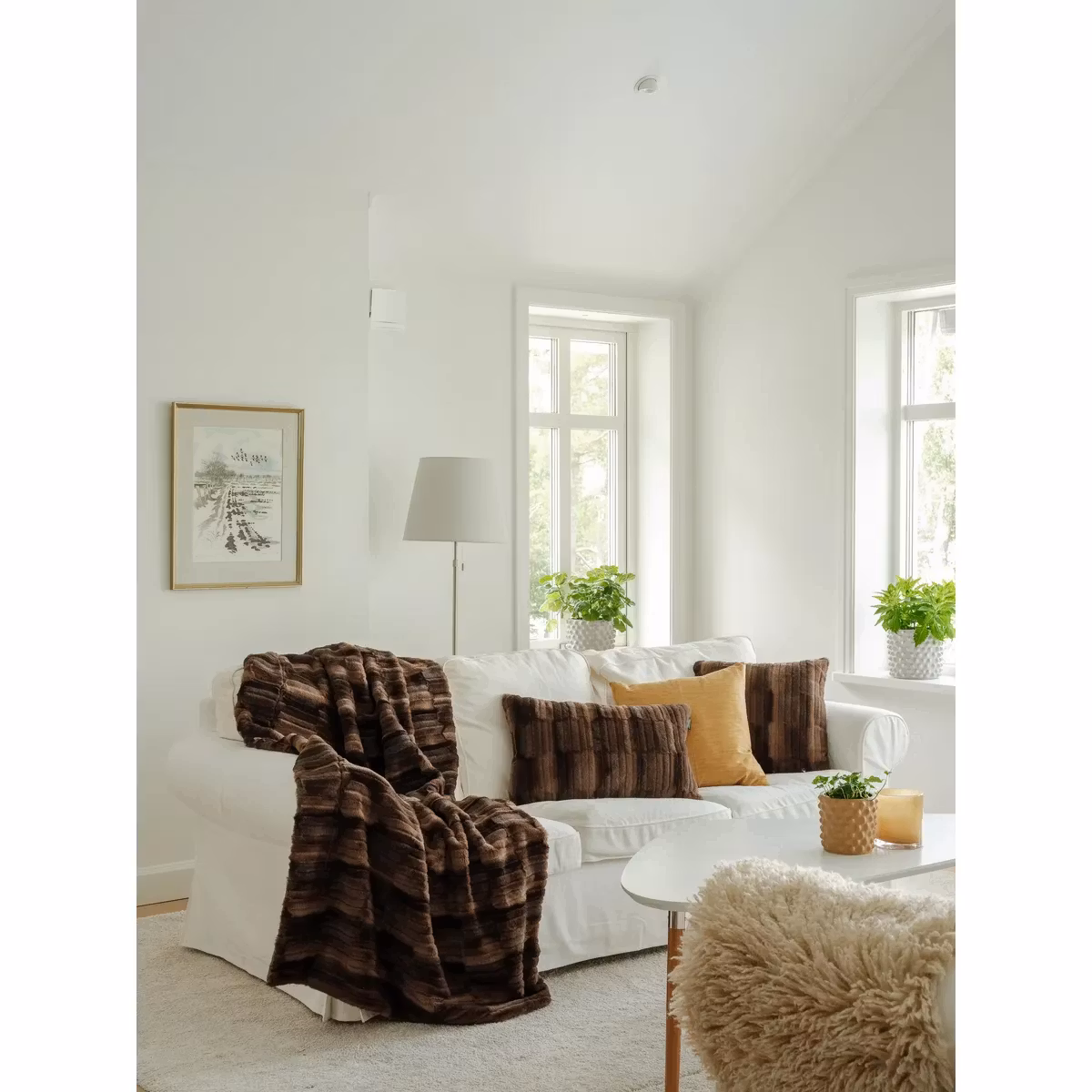Matcha gärna med våra två bruna plädar i samma mönster för en stilren och harmonisk inredning. Komplettera även med vår andra matchande kudde i storleken 45x45 cm för en komplett faux fur kudde-look.