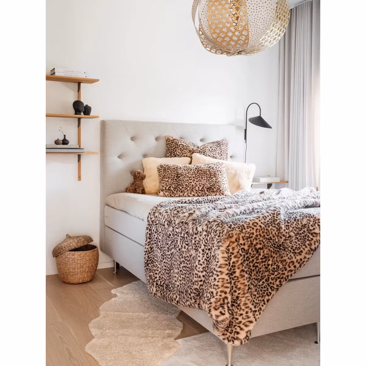 Skapa ett hem med karaktär och komfort med Leopard Lyx Pläd i fuskpäls, en lyxig mjuk och värmande pläd i trendigt leopardmönster. Den eleganta färgkombinationen i cream och bruna toner gör den lätt att matcha med annan inredning, samtidigt som den tillför en djärv och sofistikerad känsla.